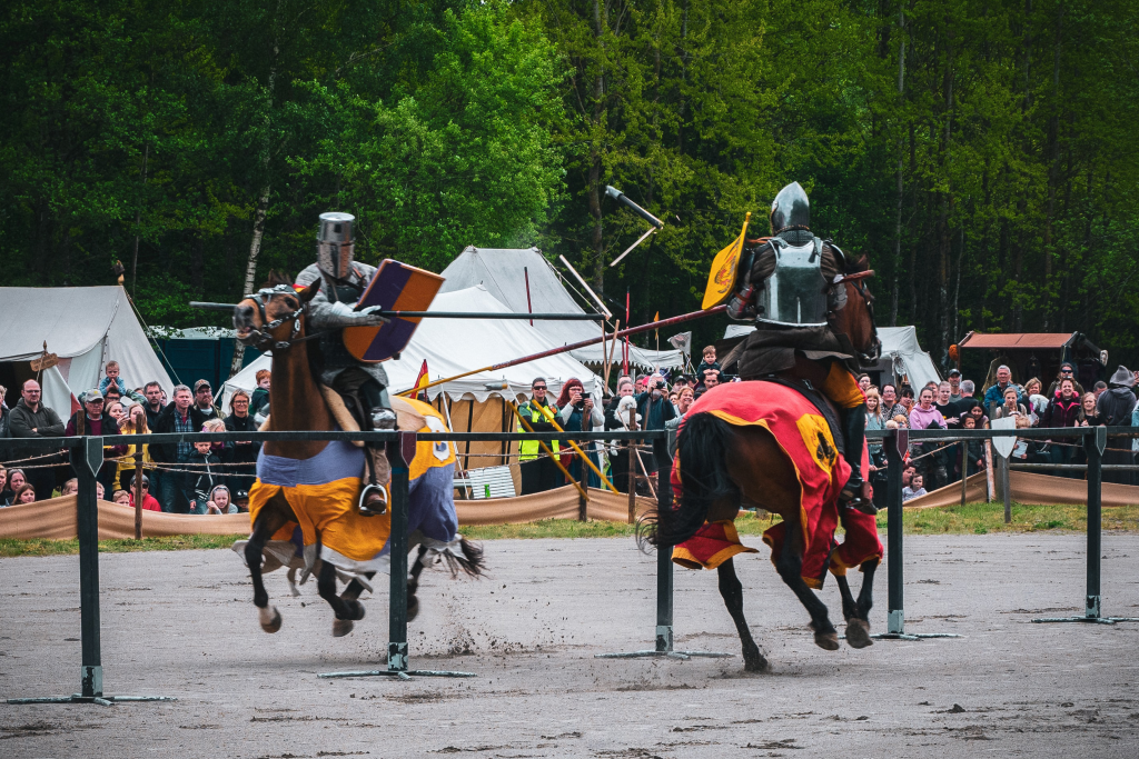 It wouldn’t be safe to put a child on a large horse and have them ride full speed at another child holding a long pointy stick – this is why under 16s are not allowed to take part in our main tournaments. However, children are welcome to compete in our kids jousting tournament, which features small ponies and lances made of spaghetti. Suitable for children aged 3-16.
